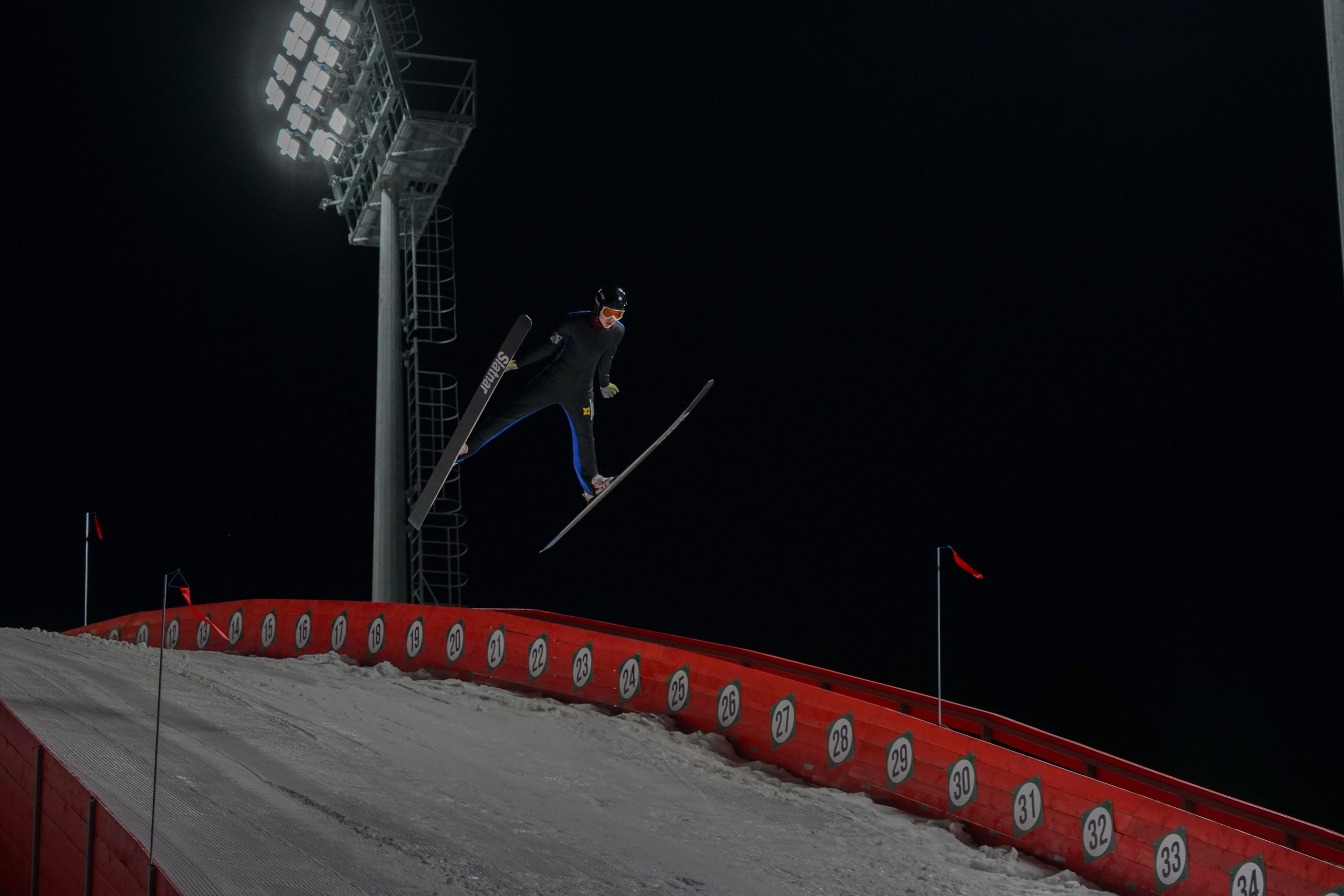 Мастерство прыжка и дальность полета на показательном ночном выступлении продемонстрировал также мастер спорта из Междуреченска, Кемеровской области, призер первенства России, этапов Кубка России, Всероссийских Зимних игр, чемпион Сибири и Дальнего Востока, руководитель строительной компании, которая занималась монтажом покрытия трамплинов Константин Коваленко. Он непосредственно участвовал в создании комплекса и в этот день сдал работу не только на земле, но и в ночном магаданском небе. Представитель подрядной организации наряду с несколькими своими коллегами-строителями сменил спецовку на спусковой комбинезон, шлем, маску, лыжи и делом доказал: все готово!