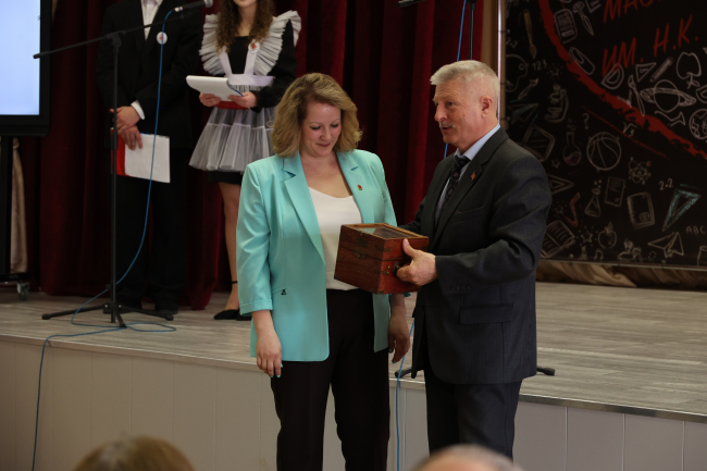 Поздравляя хранителей музея, Андрей Зыков передал Тамаре Вихлянцевой знак «Благодарность Председателя Магаданской областной Думы» за высокое мастерство, многолетний добросовестный труд и личные заслуги в развитии школьного музея. Также вице-спикер вручил Памятный адрес от главы заксобрания Сергея Абрамова и Благодарность Председателя Магаданской областной Думы директору Лицея №1 им. Н.К. Крупской Ирине Николаевой. В дар школьному музею переданы: экспонат – серебряный пазл карты Магаданской области, изготовленный к 70-летию территории, и книги Ивана Бирюкова «Жизнь людей». Также подарок передал Петр Голубовский. Теперь в школе будут храниться корабельные часы, произведенные на заводе имени Кирова.