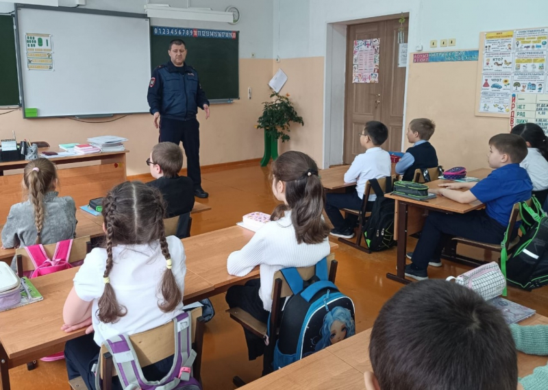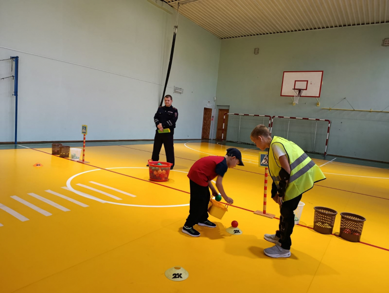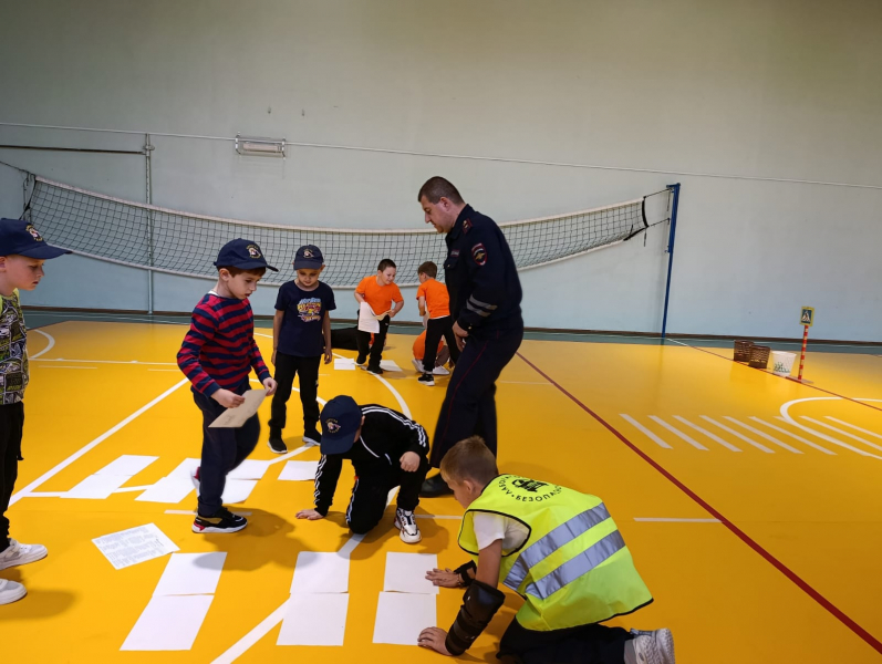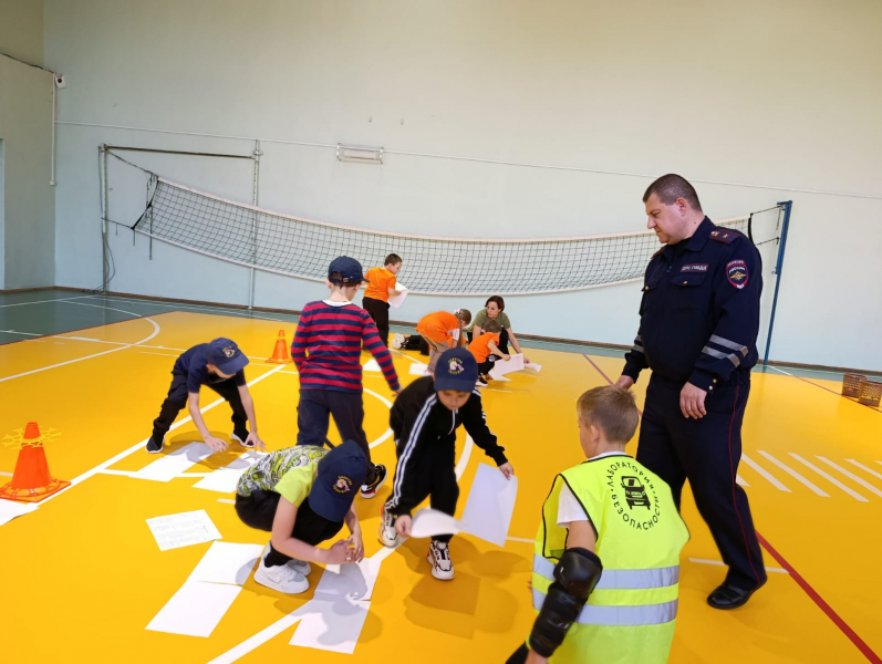 Начальник отделения Госавтоинспекции майор полиции Виктор Масалов напомнил учащимся 4-го класса о правилах грамотного пешехода, а первоклассникам помог преодолеть дорожные ловушки в игровой эстафете «Код безопасности».